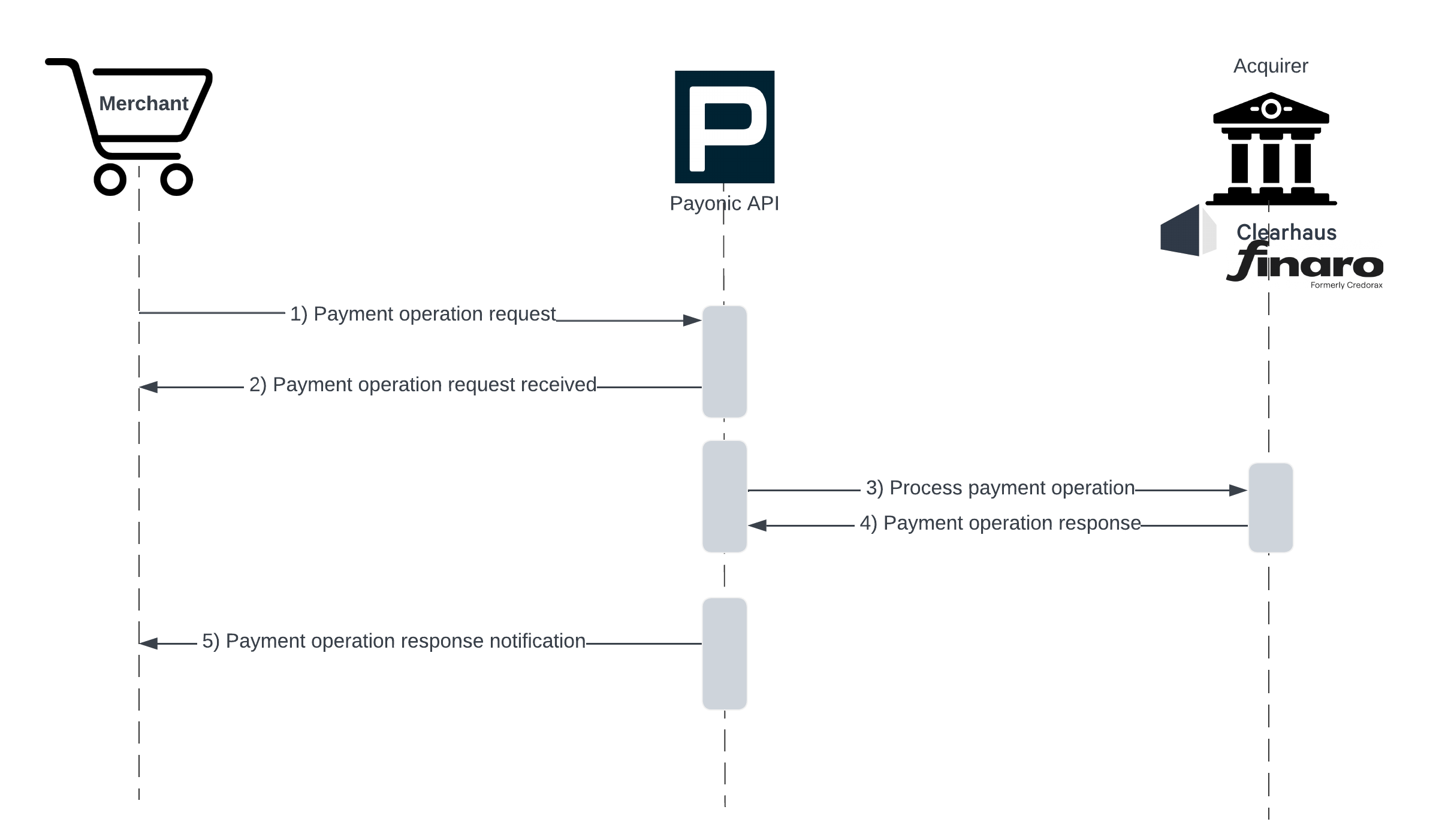 | #4 | When the connected processor / acquirer is completed processing the payment operation the response is returned to Payonic. |