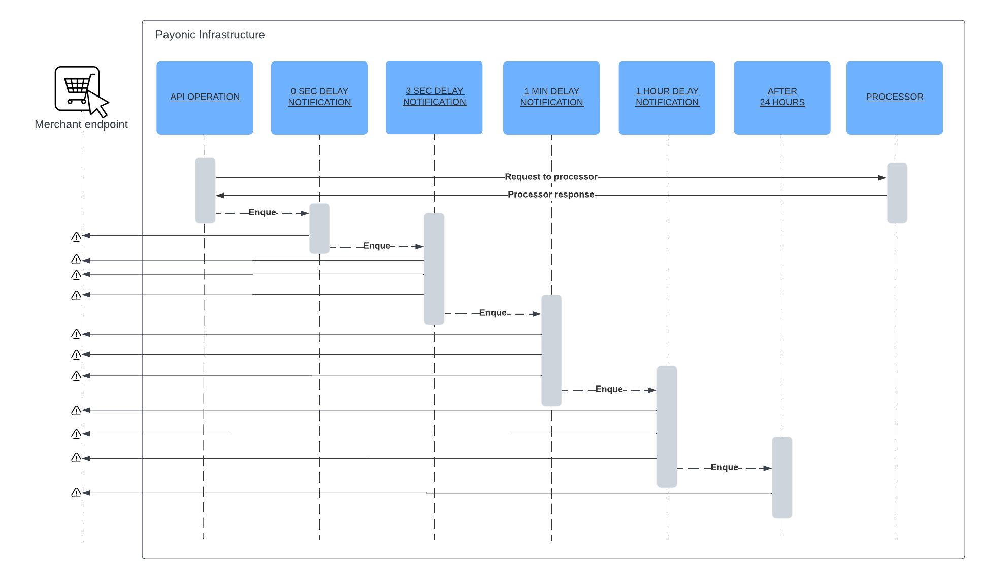 The notification expects that the receiving system replies by standard HTTP 200 as ok. Otherwise the notification will be retried once every hour up to 24 times. That means the system tries to perform a notification immediately. If this fails the system will retry 3 times with 3 second delay. Upon failure the system will retry 3 times with one hour delay. Finally the system will try to deliver the notification one time after 24 hours which is the final try.